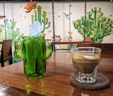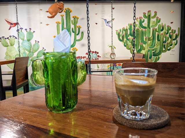 I walked down the steps that straddle the market, and at the bottom there's another cafe, Cactus Cafe, offering a macchiato oaxaqueño. Yes, please. A perfect lunchtime topper.